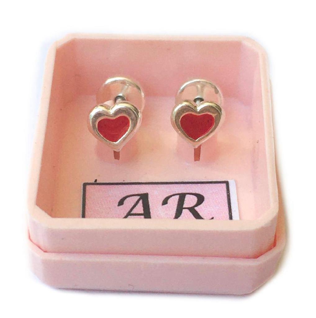 15 A-R Aro Plata 900 Corazón Esmaltado chico Rojo